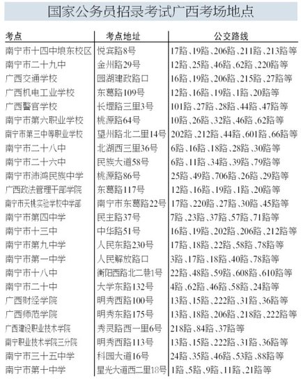 2012年中央机关及直属机构录用公务员考试(广西考区)考点位置分布
